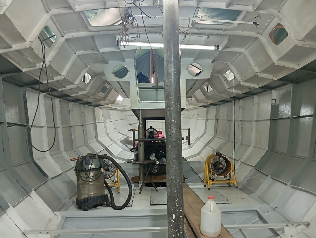 La coque est entièrement soudée, à l'intérieur comme à l'extérieur.