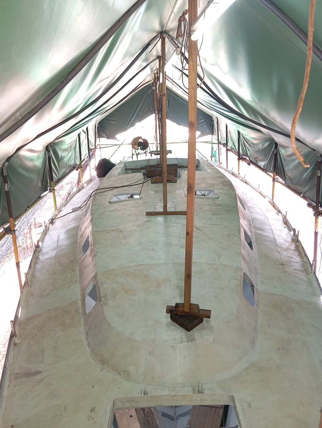 Nous avons refait le pont, installé un nouveau barre d'arcasse et de nouvelles plaques de coque aux endroits nécessaires.