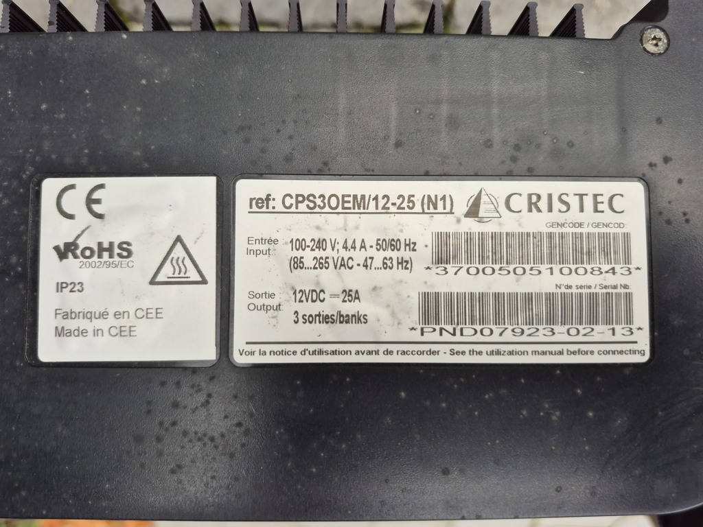 Excellent chargeur de quai en parfait état. Peut charger jusqu'à 3 parcs de batteries différents (moteur + servitude).