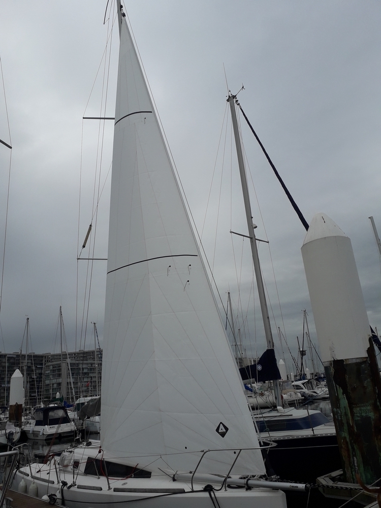 23 m2 - Coupe triradiale - Tissu DC55 UVM (mylar/taffetas) - 4 lattes - 2 ris – X Voiles 2012 - Très bon état