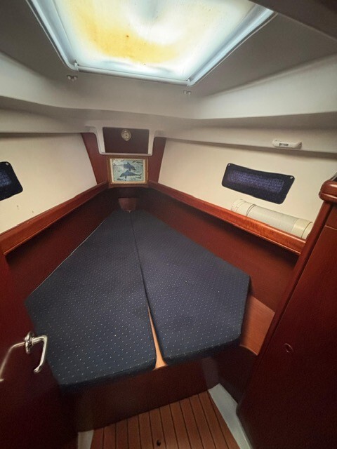 3 Cabines doubles(1 avant en V + 2 arrières lit doubles) avec armoires de rangement.Menuiseries et sellerie en très bon état.