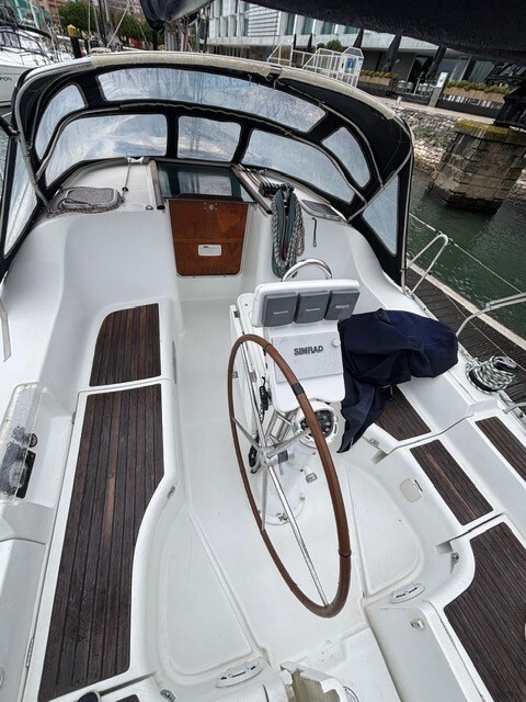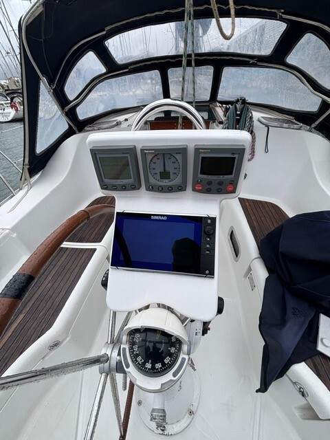 Bimini, Capote, Génois sur enrouleur, GV lattée, Lazy bag, 1 winch électrique, MAT à 2 étages de barre de flèche.