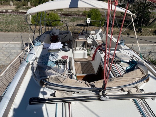 Enrouleur de génois remplacé en 2022, enrouleur de trinquette, tous les renvois au cockpit, 3 winchs électriques.