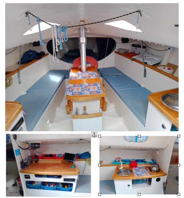 voiles: 1 GV 1 génois neuf 1 génois usagé mais fonctionnel 1 solent 1 foc 2 1 tourmentin