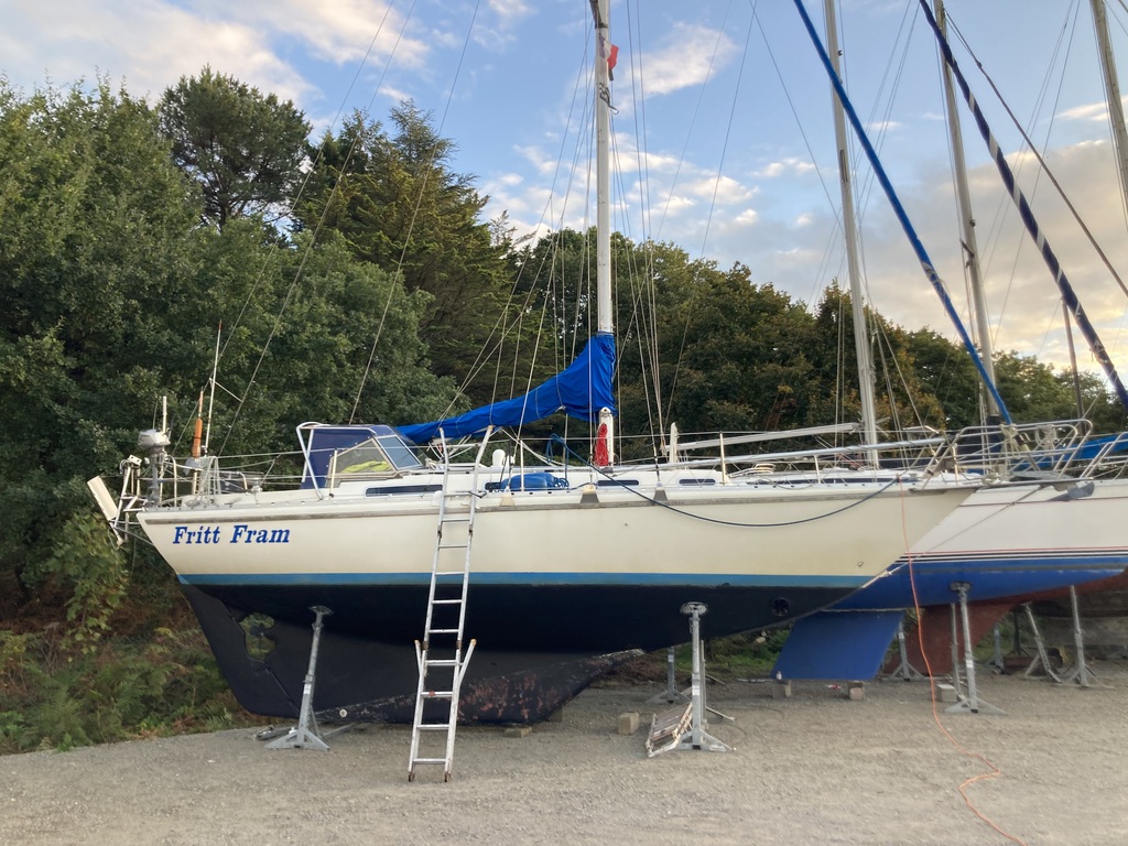 Le voillier Marieholm 33 Fortissimo est similaire au Rustler 36 mais mesure 70 cm de moins. Très bon voiliers qui atteint vite sa vitesse de croisière de 6,7 kn. Voilier équipé avec propulseur d’étrave, windvane et pilote automatique sur barre franche. Nouvelles grande voile et foc de 2020. Genua sur enrouleur. Moteur révisé et tout joints nécessaires changés par professionnel. Nouveau compresseur et évaporateur 2024. Capote en polyester avec vitres en verre dans cadrement en inox. Bateau de 1982 en bon état. Coque et pont ne sont pas repeint donc tout éventuelles défauts ou rides de vieillesse sont visibles. Guindo de sauvetage bon jusqu’à 2028. Annexe et hors bord Honda 2,3 en très bonne état. Interieur: en entrant à bâbord, la petite cuisine et à tribord la table à cartes avec grand frigo dessous. Ensuite le carré avec grande table pliable et 2 couchettes de 2 m long. Après le carré à bâbord le coin toilette avec lavabo et en face un rangement et une penderie. Le triangle est grand avec des armoires autour. Tout le bateau est prévu de beaucoup de rangements pratiques. 4 batteries (moteur, cabine, propulseur) récents de 2 à 3 années.