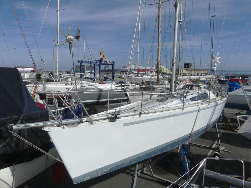 Vends voilier transocéanique Sharp 47 allongé à 51’ par une jupe complémentaire (allongement de la flottaison + accès à l’eau génial – travail professionnel), ULDB construit en 1984 par le chantier Leguen-Hémidy (spécialiste des voiliers de grande croisière en alu avec la série des Romanée, Brise de mer, Les copains d’abord, Lévrier de mer, etc…) sur plan Ribadeau-Dumas (Sun Odyssey 42, Voyage 12.50, Mercator, etc…). Dimensions : 15.50 X 2.80, TE de 1.80, 3.5 tonnes dont 1.5 tonnes de lest en plomb. Moteur in-bord volvo D1-20 de 2016 (50 heures) en sail-drive. Nombreuses dépenses en 2022 (gréement dormant et courant (Dyneema), électronique, gennaker et son accastillage, tous les hublots en plexiglass, etc…). Historique : Ce bateau été commandé par Guy Bernardin qui l’a mené dans la Transat anglaise et la Québec-Saint Malo en 1984 (Biscuits LU), puis il a été basé en Bretagne. Son poids très faible lui permet d’aller vite (et bien) au près avec une voilure très maniable (foc auto-vireur) et de s’éclater au portant (gennaker 80 M²). Le gréement permet des réglages très fins (format 7/8ème, 3 étage de barres de flèche, bastaques…). Ce bateau est le numéro 2 de la série qui en a compté 4 avant la production de son successeur, le Shark 50. Le numéro 3 de la production a fait le tour du monde en solitaire d'Est en Ouest en 2012, mené par Stéphane Narvaez : c'est à ce jour l'unique bateau de série à avoir accompli cette performance, preuve d'une capacité hors normes à affronter les éléments ! Concept du Shark 51 : Naviguer vite et bien en priorisant les valeurs essentielles de la voile : Simplicité et efficacité.