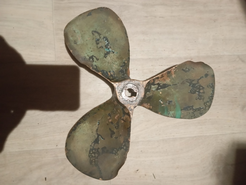 Et comme le dit très justement Calypso, chauffer le moyeux de l’hélice avec une lampe à souder, puis frapper fermement le bout de l’arbre avec un jet en bronze et un marteau. Ça devrait venir sans avoir à utiliser un arrache.