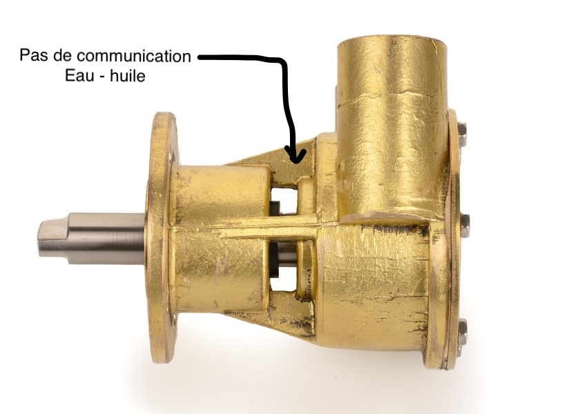 Après avoir regardé de plus près la pompe à eau, il n’apparait pas possible que l’eau passe par là dans le carter.