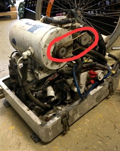 Récemment, j'ai voulu démarrer mon générateur marin Zeise diesel mais impossible de le faire fonctionner... Je me suis aperçu qu'une des courroies est cassée (photos ci-jointes). Étant donné l'état de la courroie, impossible de mesurer précisément longueur de celle-ci donc voici les dimensions des engrenages :