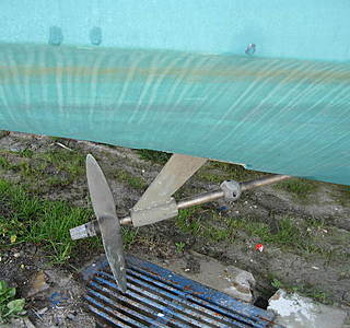 Christophek@ voici mes hélices ! C'est sur qu'avec deux pales pareilles, ça freine. D'ou mon idée d'avoir un système repliable à mettre hors de l'eau lorsque je suis à la voile. Car même si cela peut faire rire,dans les faits, il marche bien à la voile ce bateau (sous réserve de ne pas chercher à faire du près à petite vitesse !) L'autre expérience (modeste) que j'ai avec les catas, c'est le poids: plus c'est léger et mieux ça marche, et comme il y a du volume, on entasse. Le mien fait 2800 kgs en données constructeur, mais plus probablement 3500 si je le mets sur une balance. D'ou ma démarche, alléger et enlever les freins !