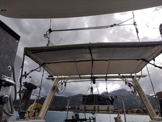 Sur le mien qui n'est pas étroit j'ai pris beaucoup sur Porquerolles une fois et à la Badine aussi (60 noeuds) et un bout bien tendu en travers a suffit pour brider les deux panneaux solaires sur la structure du bimini, j'ai juste perdu une frite dans la bataille hi hi hi