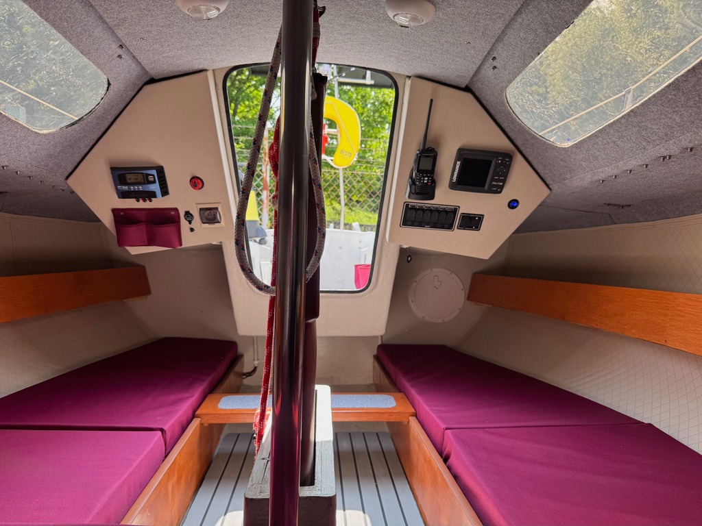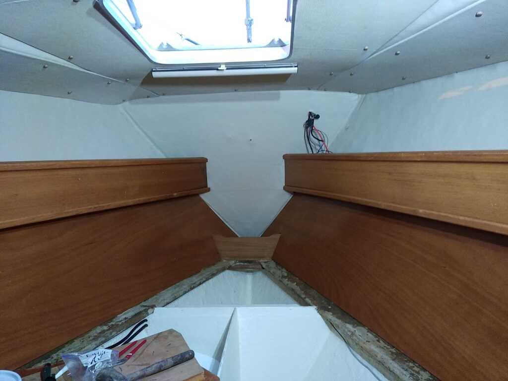 A mes yeux il n'y a que deux solutions viables,soit un vrai vaigrage démontable en bois ou autres pvc,mais qui nécessite de bonnes attitudes de bricoleur pour faire un truc propre,ou carrément peinture ou gelcoat,facile à réaliser,propre,facile à entretenir,mais qui présente l'inconvénient de la condensation,inconvenient mineur puisqu'il suffit d'un coup d'eponge pour assécher,c'est ce que j'ai fait sur mon First30 après avoir ôté cette merde de vaigrage collé. Je vois également deux autres avantages à la peinture ou gelcoat,c'est la facilité de varier la déco en ajoutant quelques touches de couleur, et également l'accès à l'accastillage et à la boulonnerie,ce qui permet une surveillance ainsi que d'éventuels réparations plus faciles sans avoir rien à démonter,ou pire,à décoller.