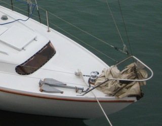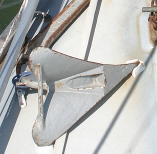 Sur les "classics" anglais (en particulier les Northshore comme les Sputherly, Fisher...), il y a souvent 3 "formes" en plastique, representant la poite une aile et la verge de l'ancre et en plus dotés d'egots pouvant faire taquets de saisie pour une garcette.