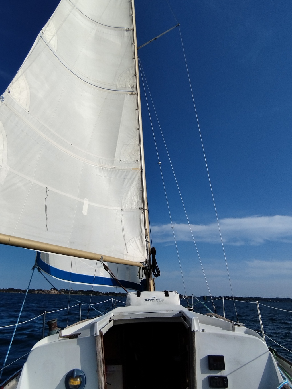 Par force 0 à 0,5, le bateau se traîne, normal. Soit on sort la ligne à pèche, soit on passe au moteur.