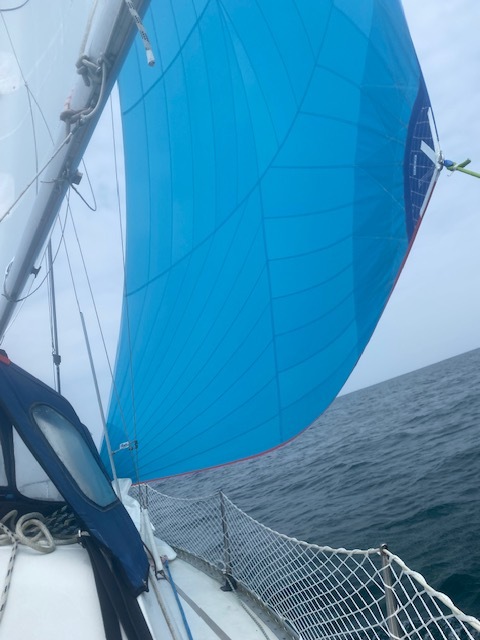 j'ai herite du spi a l 'achat c est un grand triradial avec lequel le bateau remonter comme une bete avec un chouya de vent, j'affale quand le pilote ne tient plus l 'autre jour, au travers, apres une point à 8,5 nds