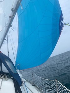 Mais lorsqu'il y a un peu d'air 1,5 à 1,8 nœuds, pour éviter de mettre le moteur je me pose la question d'acquérir un [b]très grand spi[/b] utilisable dès 60° du vent. Petit largue, travers, grand largue et vent arrière pour augmenter de façon significative ma vitesse.