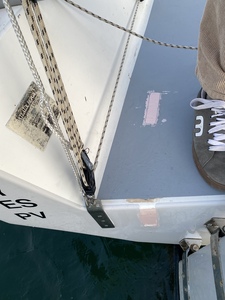 J'ai un barreaux de blocage au dessus de la quille sous forme d'une tige fileté inox et qui participe à la restriction de mouvement longi&lateral (même si je suis pas sur que le système soit fait pour que des efforts passent par là)