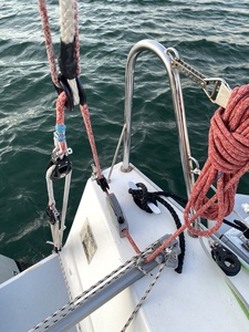 L’idéal serait d’avoir une 2 ieme drisse plus en hauteur pour ramener plus vers le bateau mais c’est 2 coinceurs 2 filières