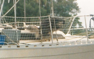 Plusieurs années après l'avoir prise, on s'est aperçu qu'en arrière plan d'une photo du bateau dans les iles Salomon, il y avait notre chien en train de faire sur le pont, l'air de dire "on peut pas CH... tranquille"