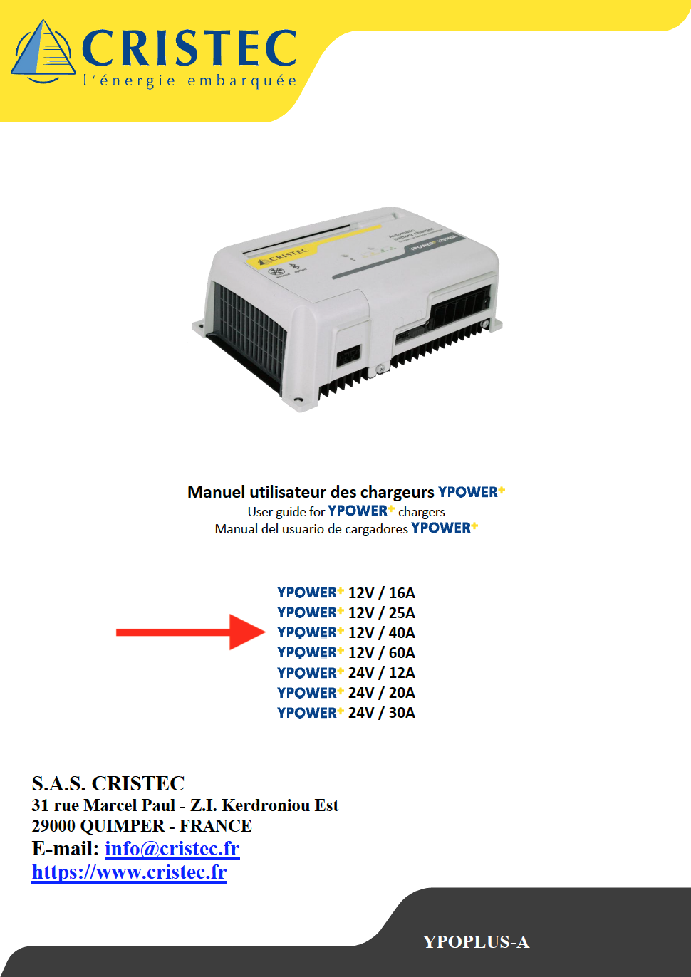 J’ai un Chargeur de quai Cristec 40 Amp 3 sorties, un Répartiteur de charge Cristec avec 3 sorties (3 parcs batteries: moteur, propulseur et service)