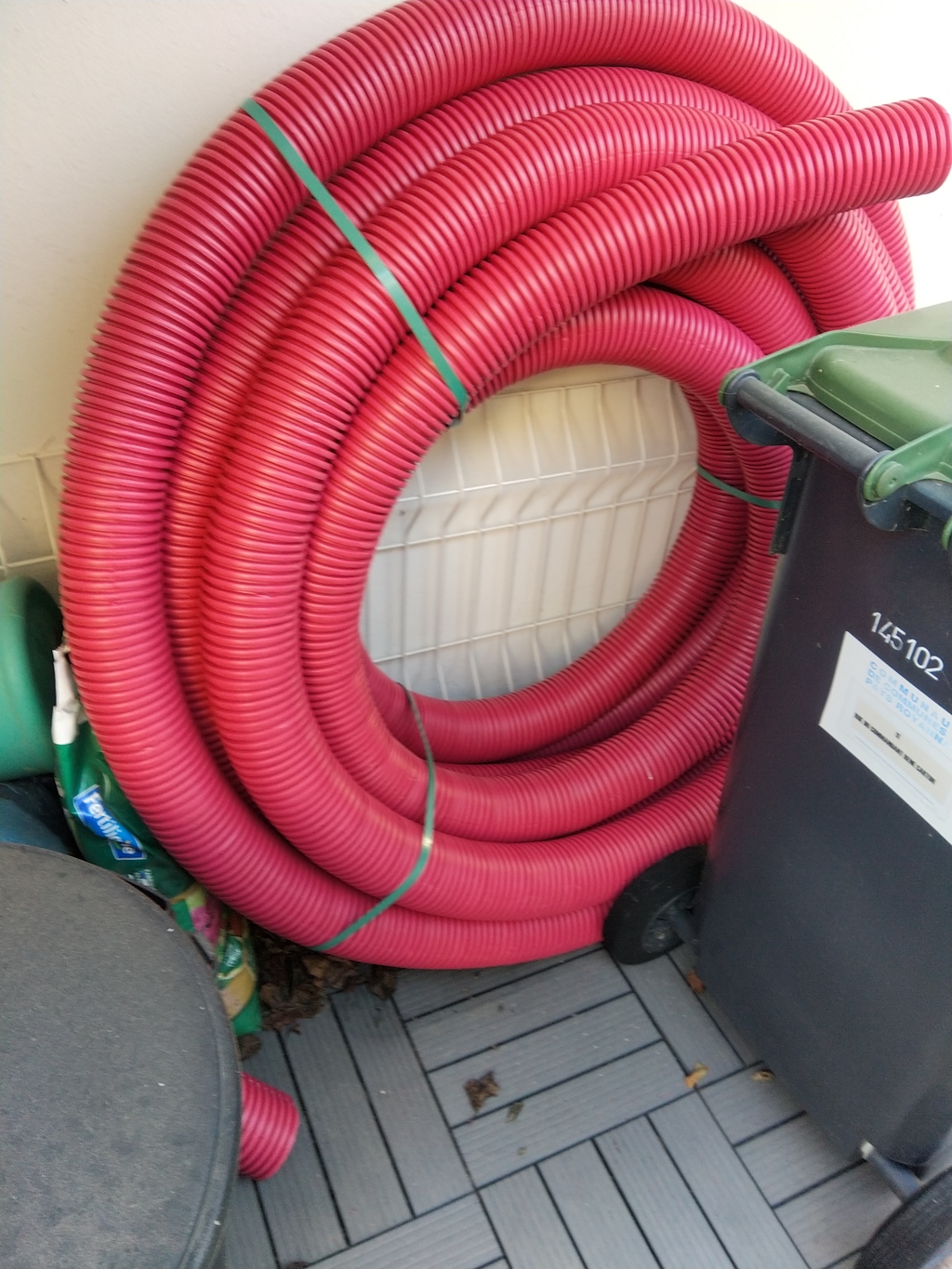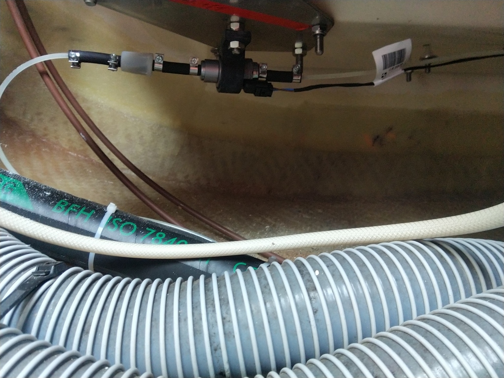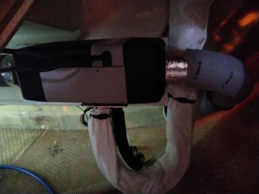 J'ai aussi ajouté du tuyau annelé orange pour isoler les tuyaux d'air pulsé et les protéger des packs d'eau, ancres, annexe, etc qui pourraient basculer et les écraser