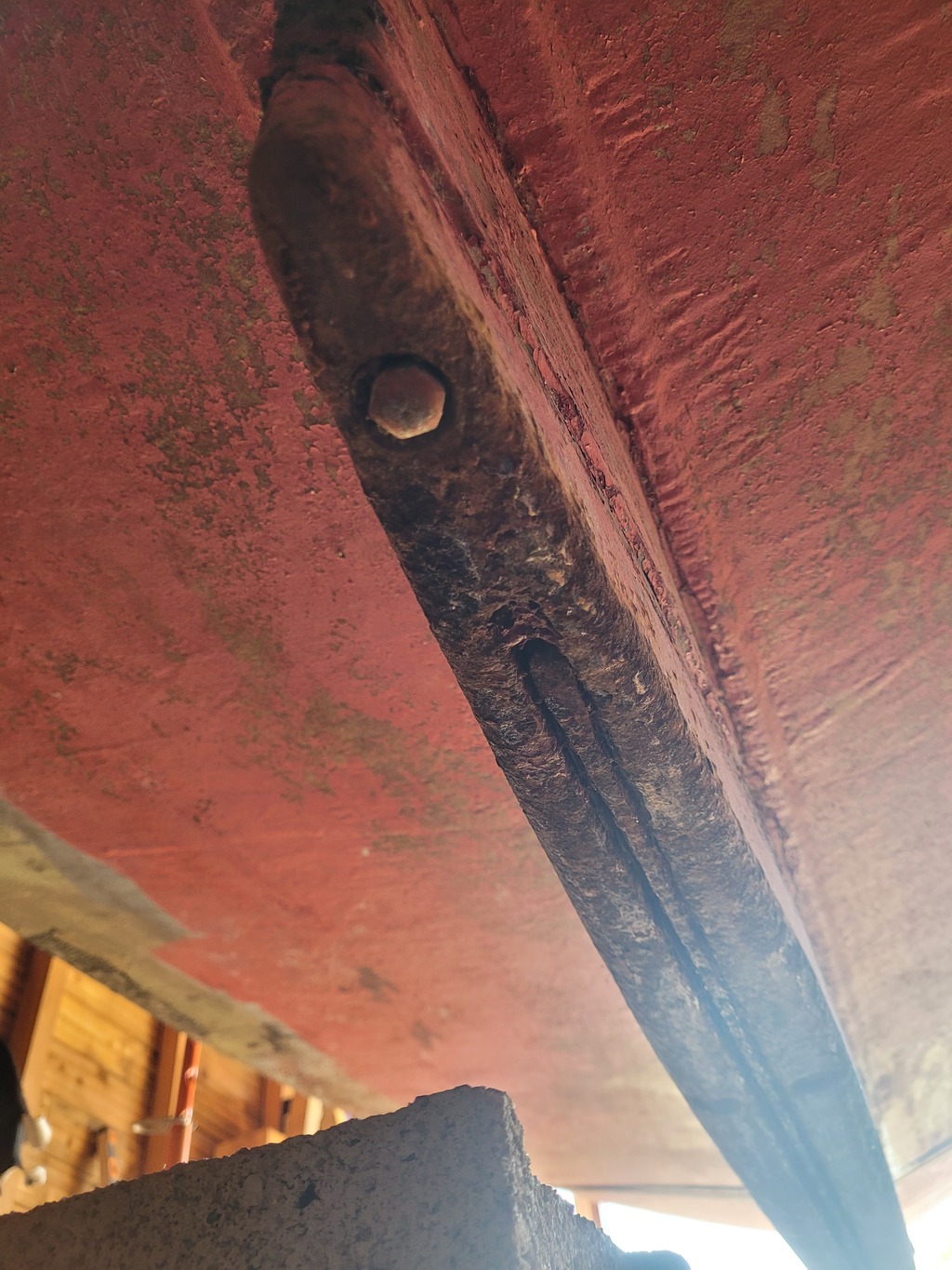 Il a commencé à baver par endroit, sans montrer trop de tenue (ondulations, cloques) et l'eau s'est inflitrée. Quand j'ai retiré le joint, des lamelles de quille sont venues avec (le métal s'effrite, voir photo).