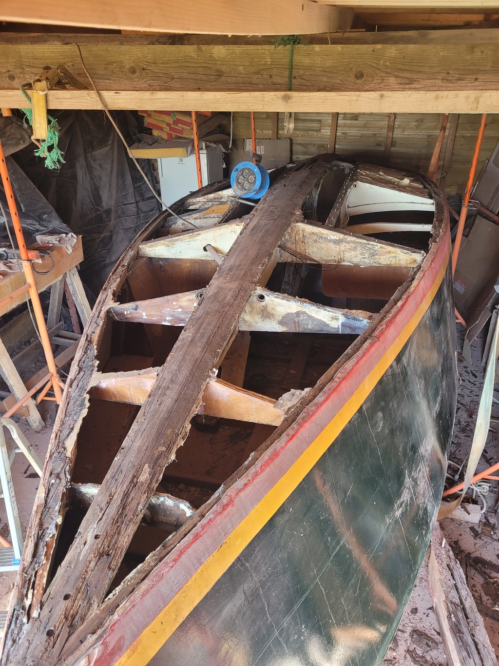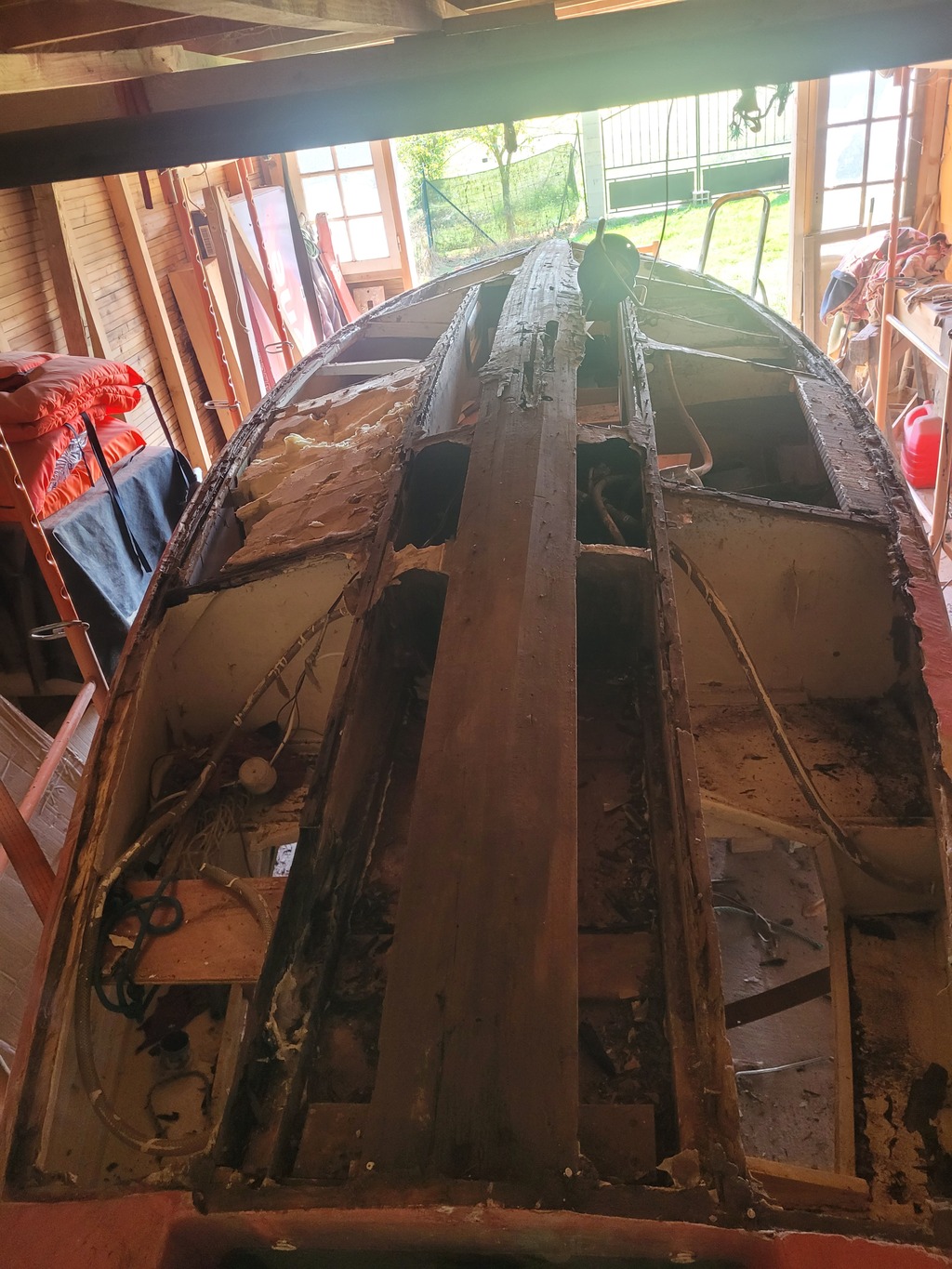 Hier m'occuper de la coque de Funky Junky, il a fallu que je retire une bonne partie du joint de quille.