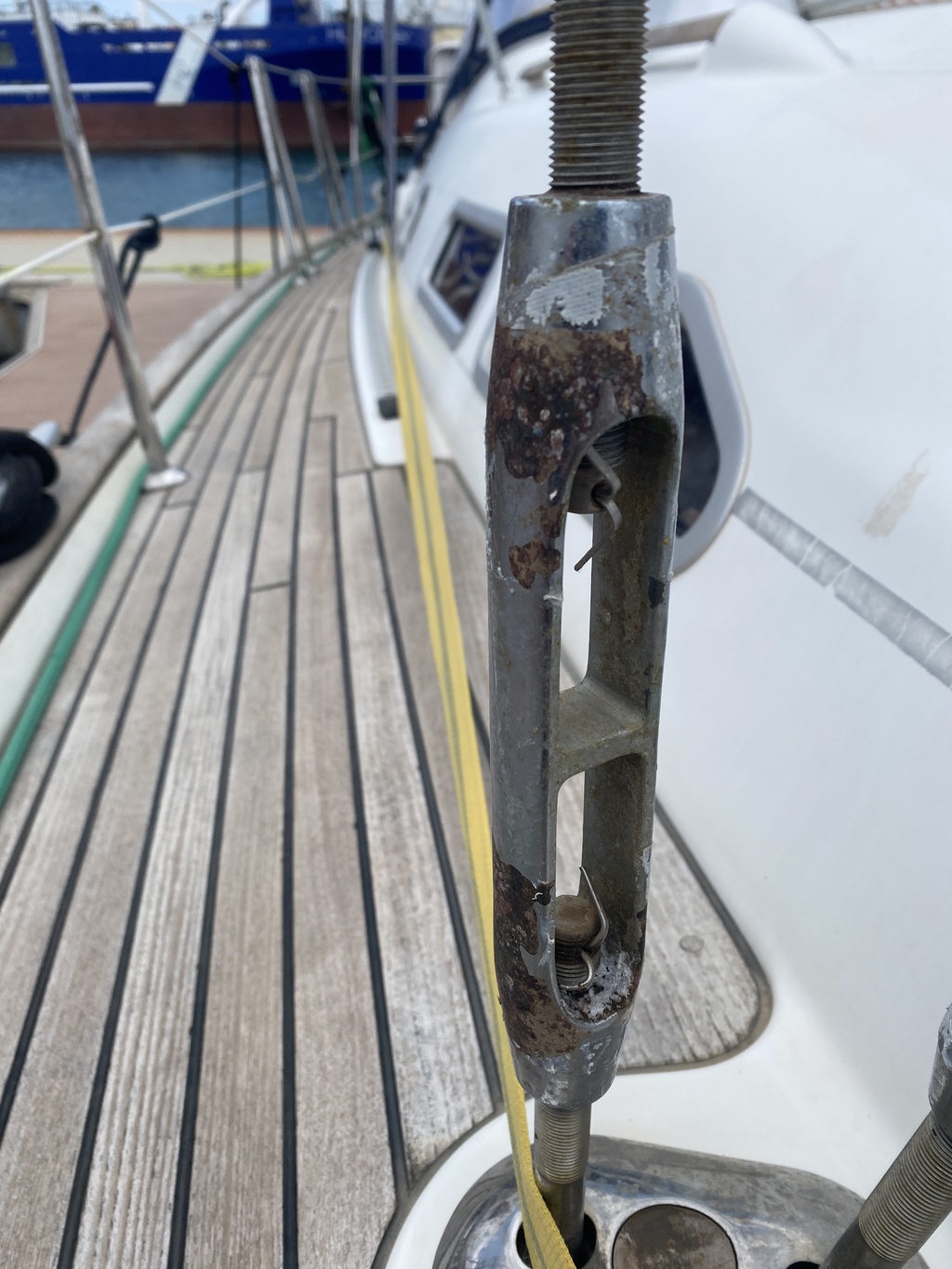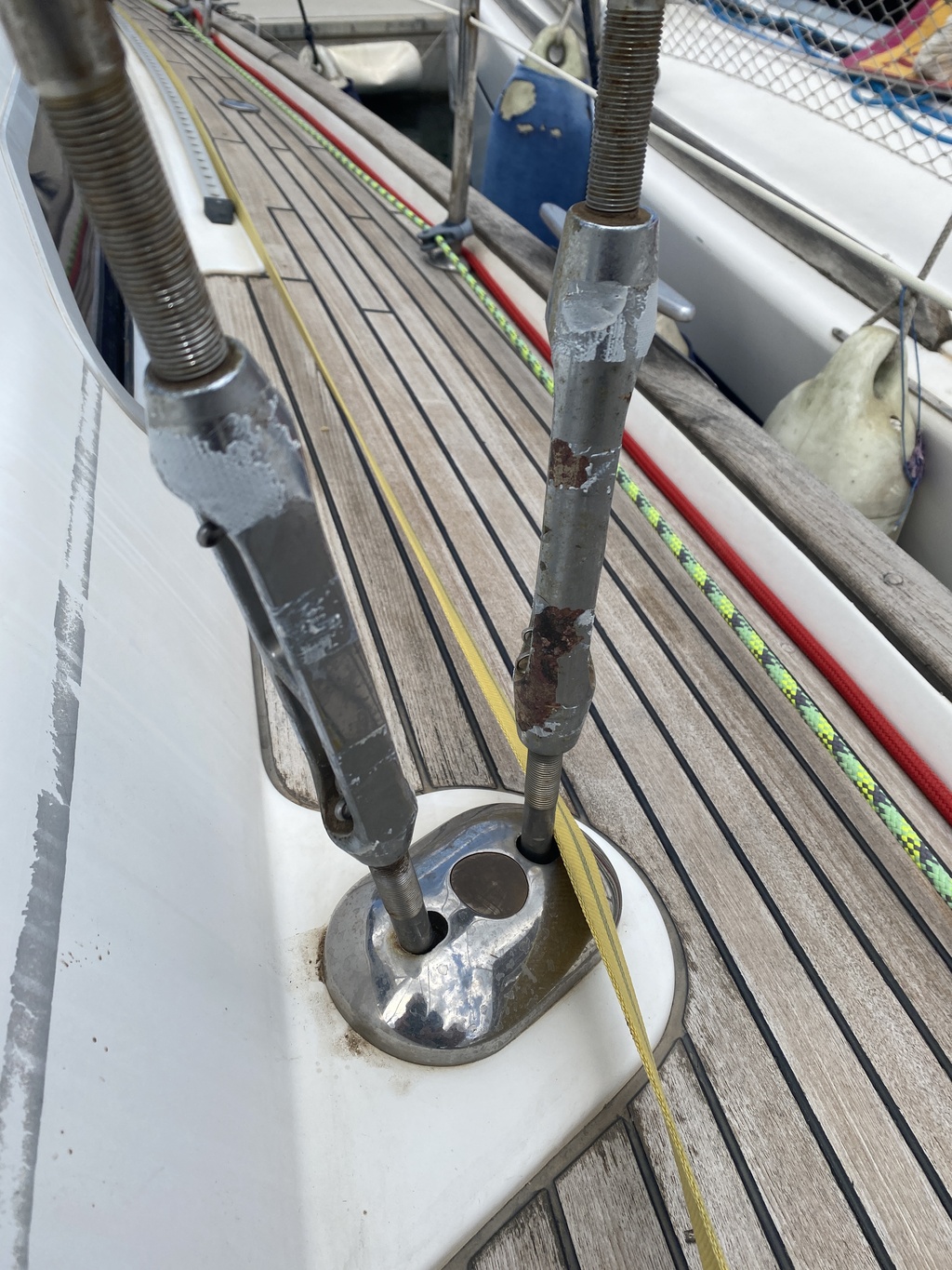 A noter, le gréeur avait mis en place selon les haubans des ridoirs Z (concernés par le pb évoqué plus haut) et des ridoirs AMCO (qui n'ont pas bougé lorsque j'ai enlevé l'adhésif).