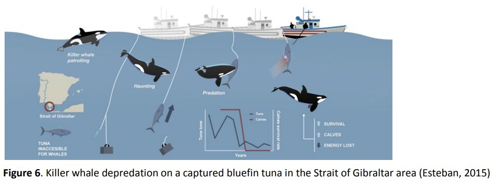 Orques en interactions avec les pêcheries de thon rouge au large du Maroc et de l'Espagne.