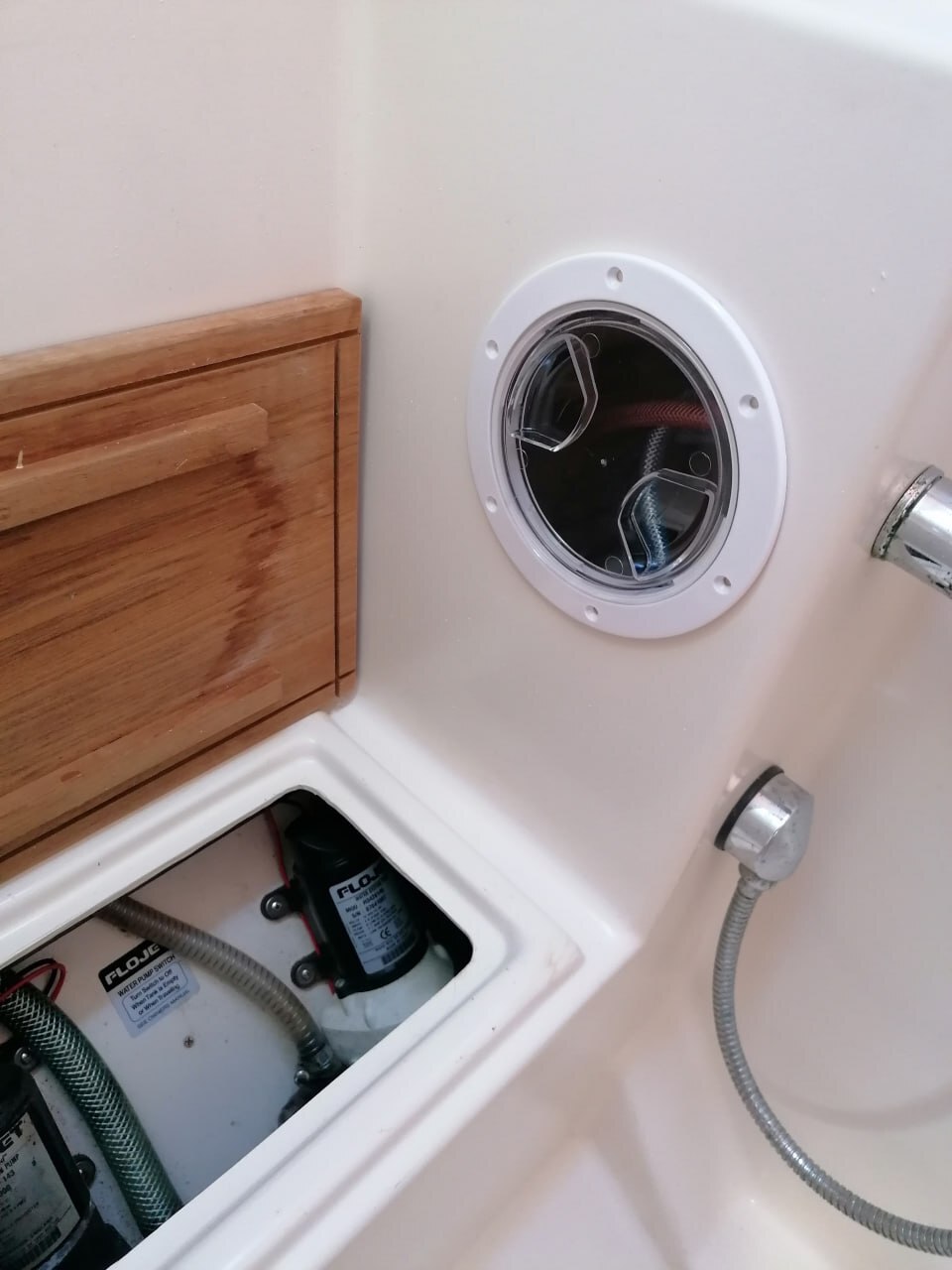 L'eau qui coulait sur mon Hanse 370 à cet endroit là venait de la douchette de la salle de bains.