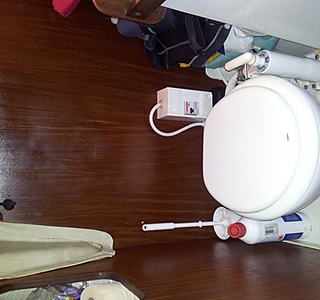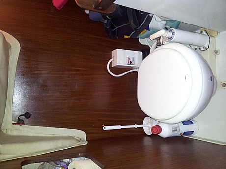 Du coup, par commodité, pour éviter de faire plein de trou dans la coque, on allait faire comme les copains proprios de GS 84 qui l'avaient placé sur la paroi des toilettes. www.hisse-et-oh.com[...]-sea-84