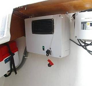 Très peu de place au fond de la cabine arrière, et dans le coffre bâbord c'est très limite, juste à côté du réservoir GO et des conduits moteur. Franchement ça aurait été bien plus facile de le placer sur la paroi des toilettes 1m50 plus loin !!