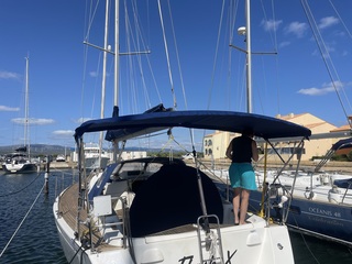 Les cagnards et la housse de bimini sont parfaits ! Quel plaisir d'avoir fini et de les voir en place !