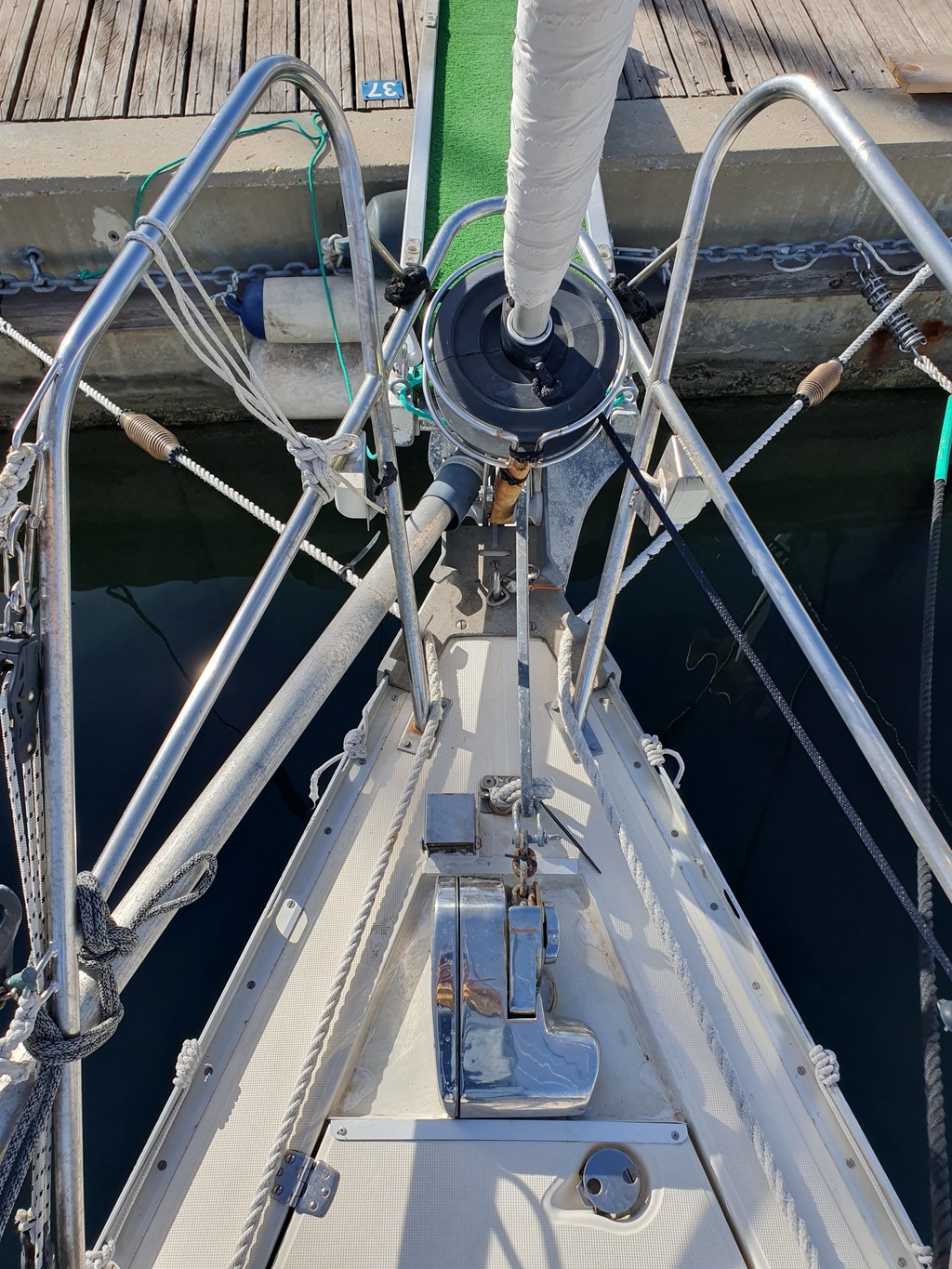 Je planche actuellement sur une installation de bout-dehors et j'ai le souvenir d'avoir vu des ferrures d'étrave, intercalée au niveau des lattes ridoir entre la cadène d'étai et le tambour d'enrouleur. Je ne retrouve plus qu'un seul exemple sur internet, photo ci dessous, et absolument rien dans le commerce. Cette solution aurait-elle été jugée non viable par les fabricants, est ce fabrication artisanale. Si vous avez des pistes svp.