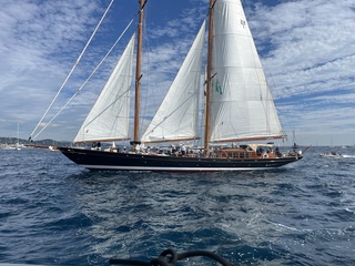 J'y suis allée le jeudi soir en revenant de Cavalière (nous retrouvons J Ph pour une petite navigation avant sa traversée vers la Corse) St. Trop était plein de monde et de beaux voiliers, à la nuit de St. Maxim ils étaient illuminés, magnifiques !