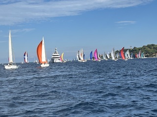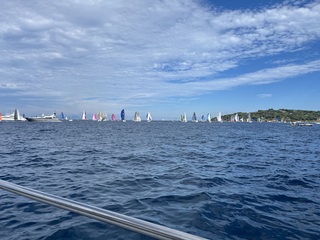 En route vers l'Italie en 2005 j'avais eu le temps d'admirer la flotte scotchée dans la pétole. Magnifique spectacle pour moi mais moins drôle pour les concurrents dont la régate avait été interrompue avant la fin.