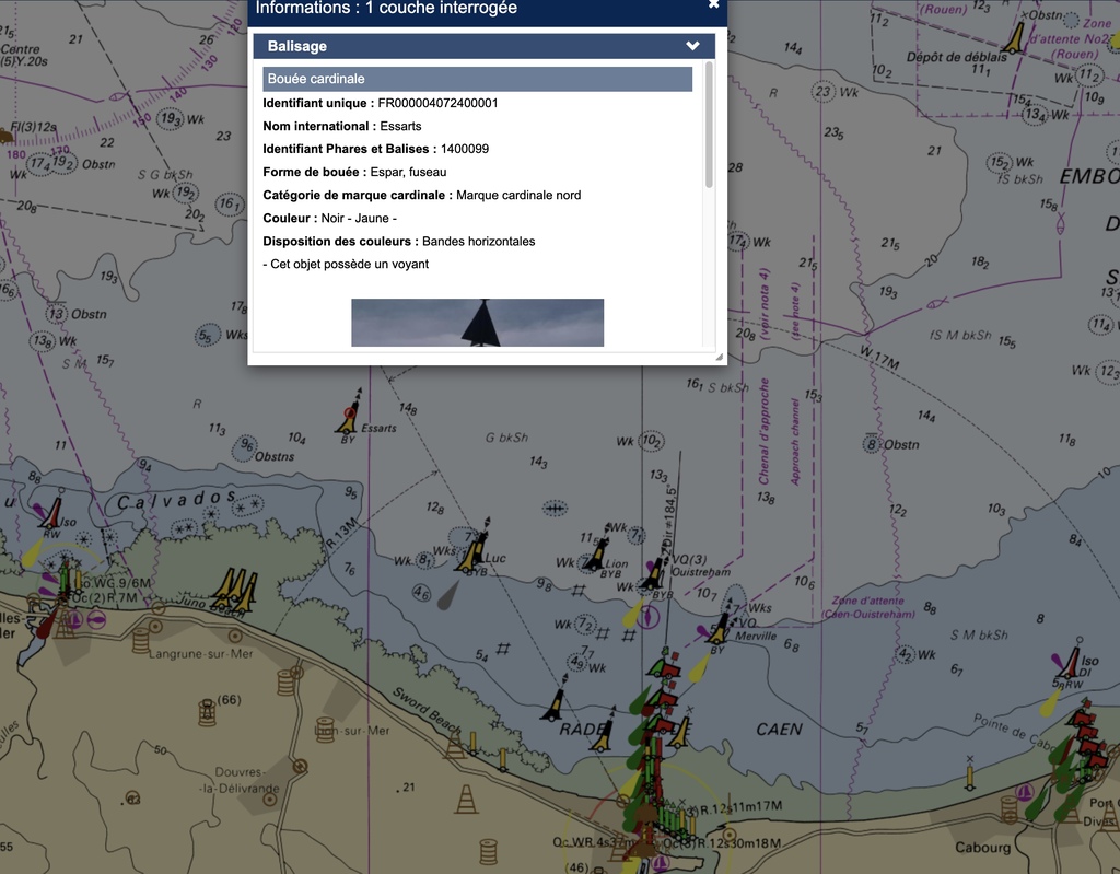 -La balise cardinale nord Barnabé à l'entrée du chenal de Ouistreham est géolocalisée à 5m près, .