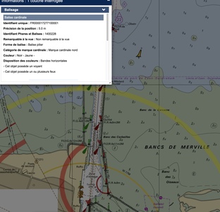 Les cartes électroniques de navigation officielles (ENC) sont établies sur la base de données cartographiques vectorielles (format S-57) contenant la description détaillée de chaque objet (marque de balisage, épaves, câbles sous-marins, zones réglementées, sondes, etc ...)
