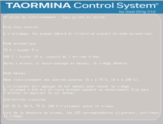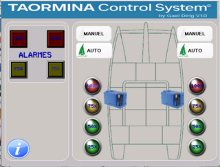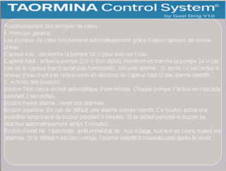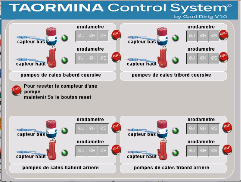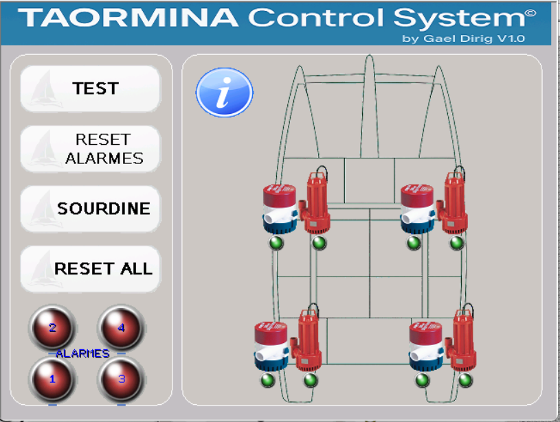 je m'appelle gael suis entrain de construire un catamaran de 17m de long en aluminium qui est fini a 90% et est a flot deja. je suis entrain de faire un systeme de gestion par HMI pour mon catamaran je voudrais avoir vos avis et si je n oublie rien comme circuit de commande. cest une premier version avec un acces aux differente pages, une gestion automatique des pompes de cales et cuve eaux noire,relais de puissance,alarmes, orodametre, presence quai ou port, tension etc...merci