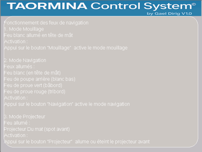 Du coup et par manque de temps l'extension électrique de notre nouveau bateau a été faite de manière plus traditionnelle avec inter manuels et voyants. Mais je garde en tête le projet.
