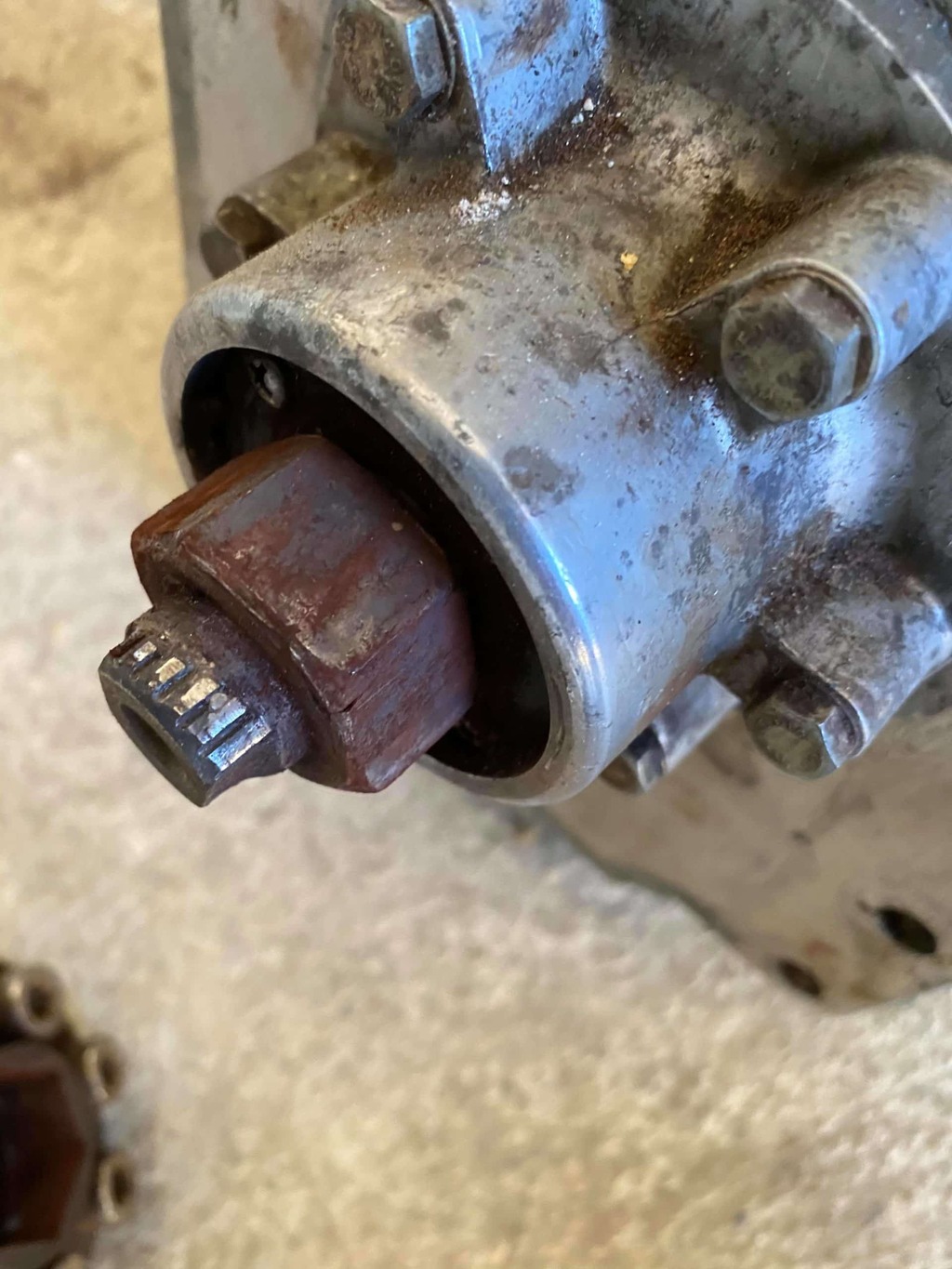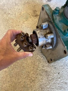 Je suis confronté également à l'usure de cet inverseur. En parcourant l'internet je suis tombé sur le site "casse-marine" qui présente un inverseur équipé d'un gros écrou (je suppose que l'arbre a été fileté). L'écrou en question vient se loger dans une tête hexagonale creuse (vissée ? soudée ?) sur le tourteau. Ca semble rustique et économique...