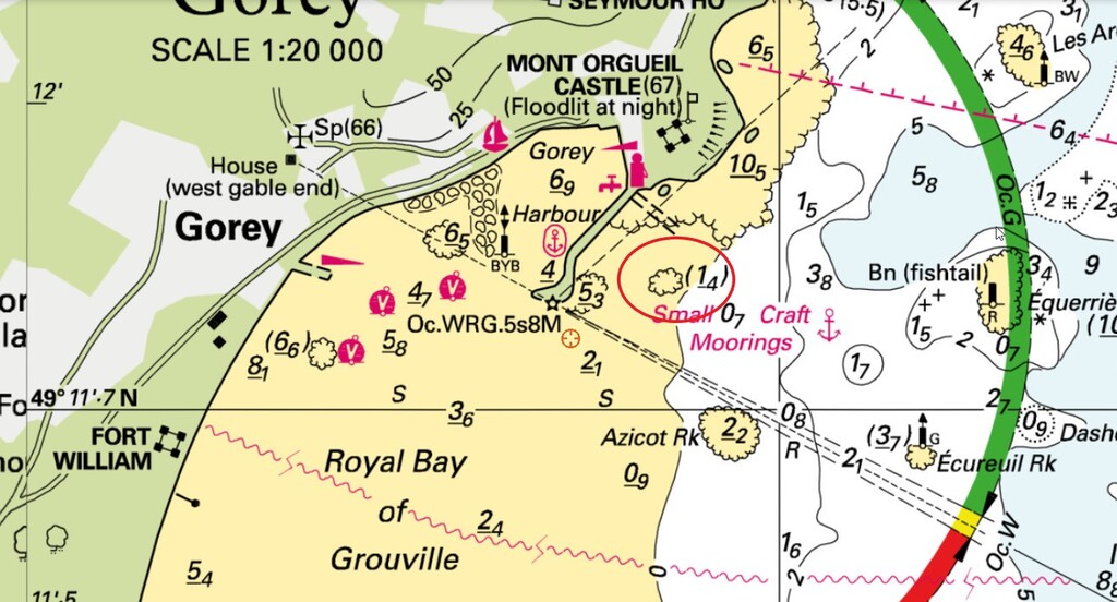 De Gorey c'est beaucoup plus rapide. Attention au caillou avant la jetée, il est n'est indiqué que par la carte, il est dans l'alignement pour les bouées visiteurs et il découvre.