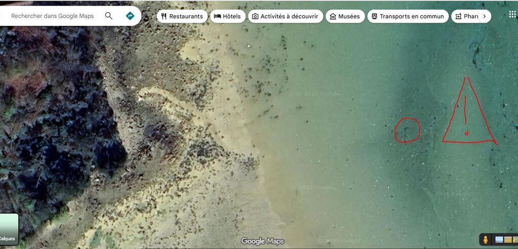 Mais à encore attention : un pavé non recouvert d'algues et pris en photo satellite en plein soleil peut ne pas être bien visible. Et y en quelques beaux en Bretagne Nord.