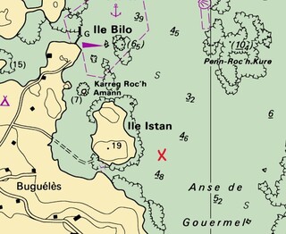 Voir la carte su SHOM qui mène à l'échouage au Suet de l'île Istan. On y est très bien protégé des vents de secteur Ouest, même si par grand frais, il y a un peu de houle qui rentre ai plein. Mais rien de gênant à la posée.