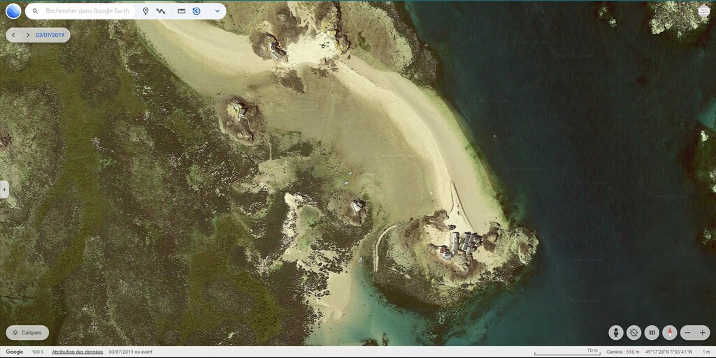 Sur google earth, on peut aussi choisir des photos plus anciennes qui peuvent être meilleures pour un spot donné, par exemple pour les Ecrehous, je trouve parfaites celles de juillet 2019