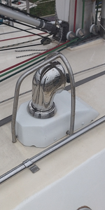 J'ai ensuite fait une protection en rond plein d'inox ,plus joli qu'un tube et plus facile à cintrer, bien que ce soit un peu loupé pour avoir le cintrage parfait.