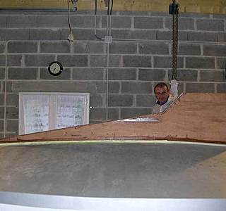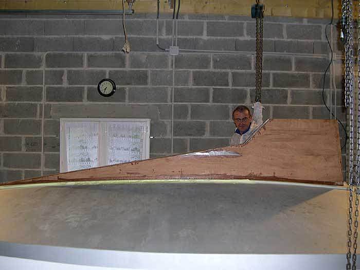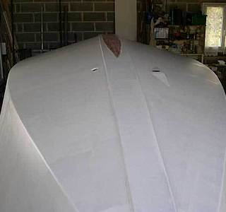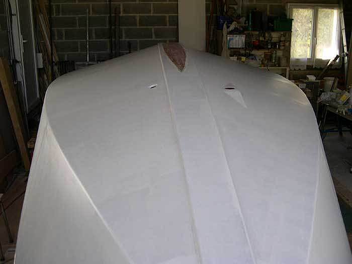 AMHA , collage de la pièce en bois sur la coque avec de l'époxy .