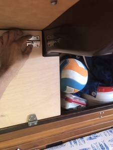 Et si non , pourquoi ne pas simplement percer le vaigrage au dessus ?? (Loquet vers le haut)