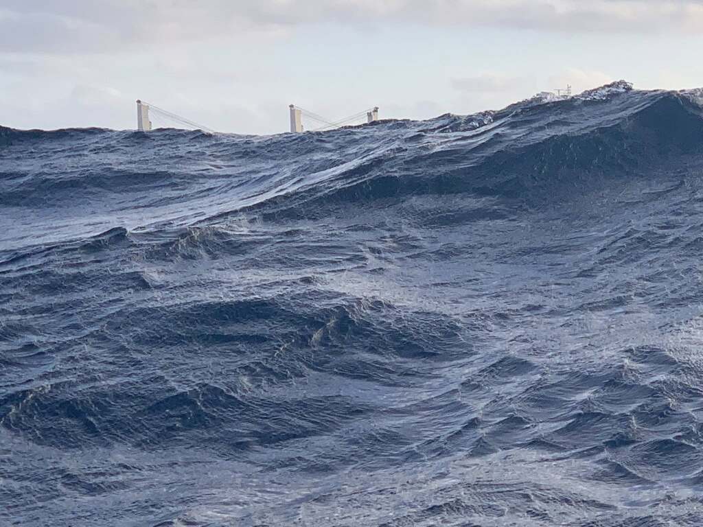 Dan signale sur son FB un vent jusqu'à 40 nds, tandis qu'un porte-container l'a dépassé tout proche : quelle hauteur la vague ?