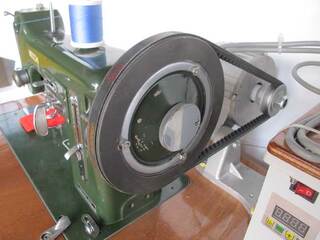 Nous avons équipé une durkopp, elle sert aussi bien à coudre des bandes uv, des sangles de tetière ou des tauds qu'à recoudre des slips.